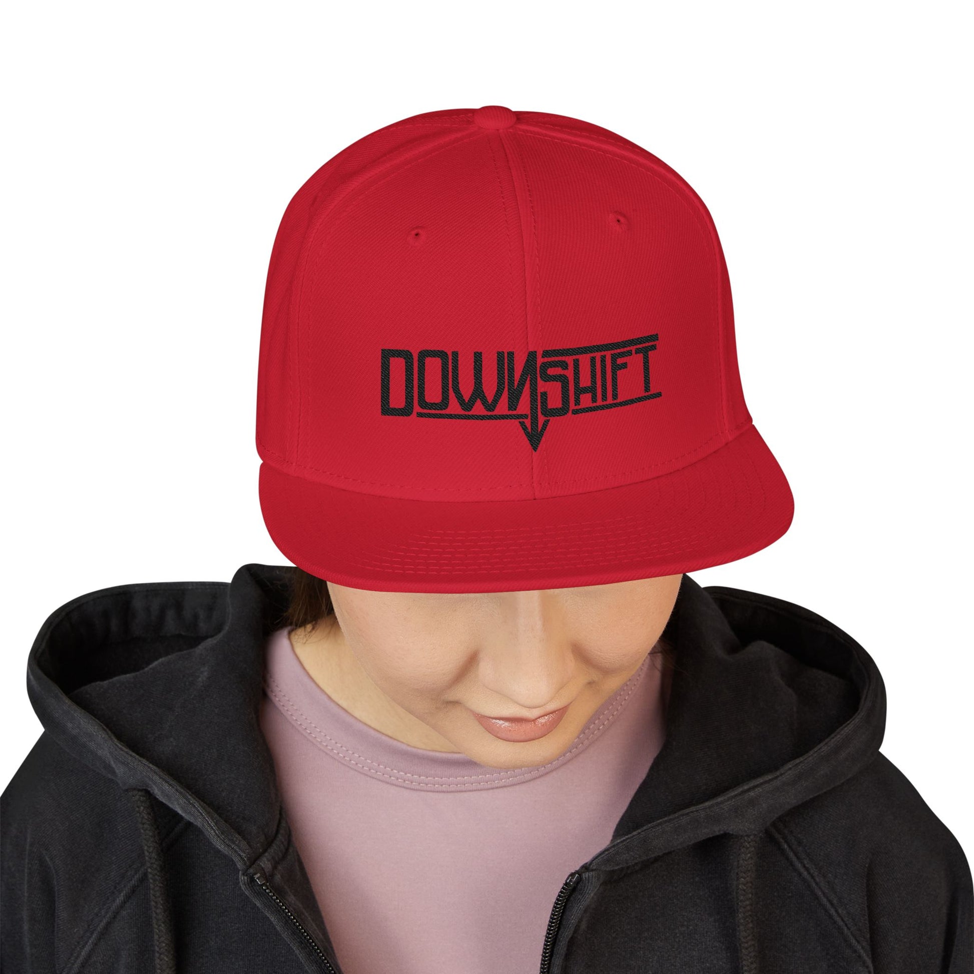 The DownShift embroidered snapback flat bill hat. For that bold, streetwear vibe